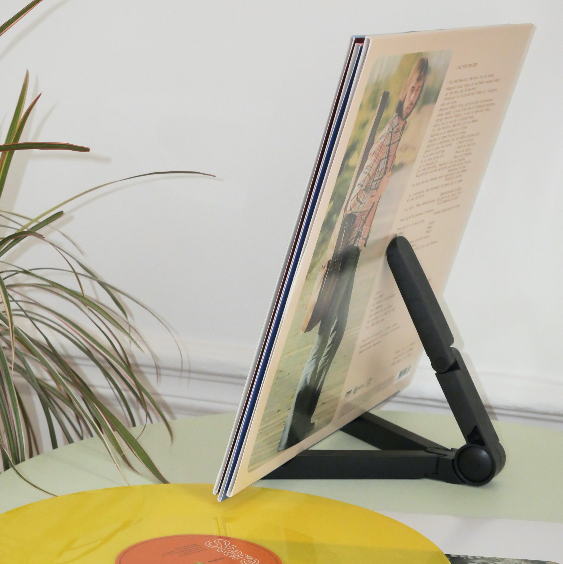 Le support noir articulé VINYLCARESYSTEM est conçu pour exposer vos pochettes de disques vinyles avec stabilité et précision.